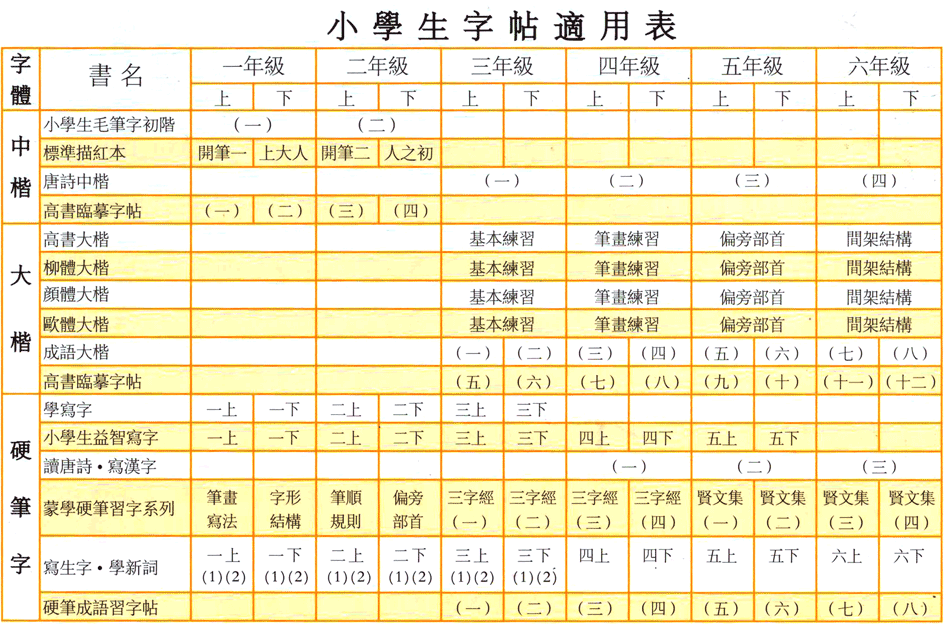 字是語文的本根…… 掌握文字的形音義愈正確,閱讀理解就愈透徹,寫作就愈文從字順… 小學是語文學習的初階,怎樣教學生正確地掌握字形,是教師的重要任務。」—《常用字字形表》序 「教育局一向重視中、小學生的識字和寫字學習」 —《中國語文教育正面睇(2009)》 「考生字體潦草,書法拙劣,筆畫模糊,難以辨識。字體是一個人語文能力的外觀,連筆畫清楚也做不到,令人震驚…… 在電腦打字日漸普及的今天,『寫字』問題應該重新提到語文教學的日程來。」 —(2008高級程度會考…中國語文及文化P.75) 「書法」是中國崇高的藝術之一,也是中華文化的精髓。學習書法,不但可以怡情養性,變化氣質,還可以訓練審美及觀察的能力。 字帖分類 硬筆類 毛筆類 英文類